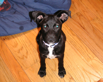 Female, 13 weeks, Lab mix, Blk w/White chest. Outgoing and energetic. |